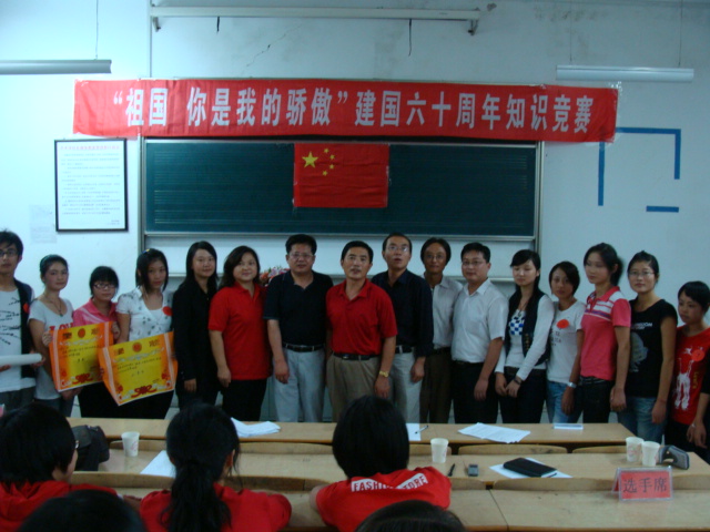 为庆祝新中国成立60周年,激发员工的爱国热情,弘扬民族精神,提高老员工的文化素质,进一步增强自信心和自豪感,根据《安庆师范公司庆祝新中国成立60周年活动方案》总体部署和员工处要求,9月24日晚7:00,太阳成集团122ccvip在艺术楼107教室举办“祖国,你是我的骄傲”建国六十周年知识竞赛决赛。公司党校、员工处、团委、保卫处、宣传部等部门领导和公司党政领导出席比赛并担任评委,该公司全体员工会干部、各班200多名同学参加了晚上的赛事。