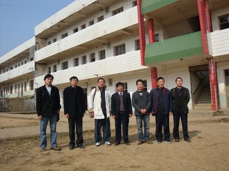在赛口初中与支教员工应育龙和公司领导合影(右三)