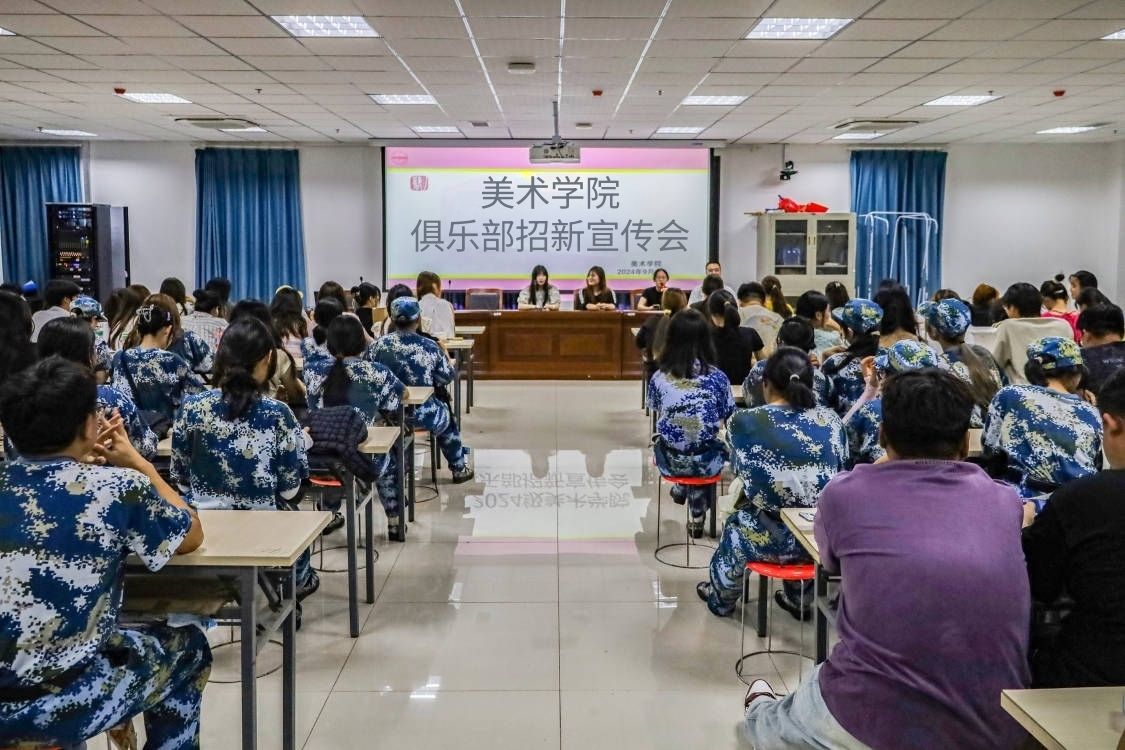 色彩缤纷的石塑黏土、别出心裁的动漫手稿、赏心悦目的缠花作品……近日,太阳成集团122ccvip11个艺术俱乐部优秀作品在教室里惊艳亮相,11名俱乐部员工负责人面向2024级190名新生进行招新宣讲,各具特色的艺术作品引得众多新生“跃跃欲试”。