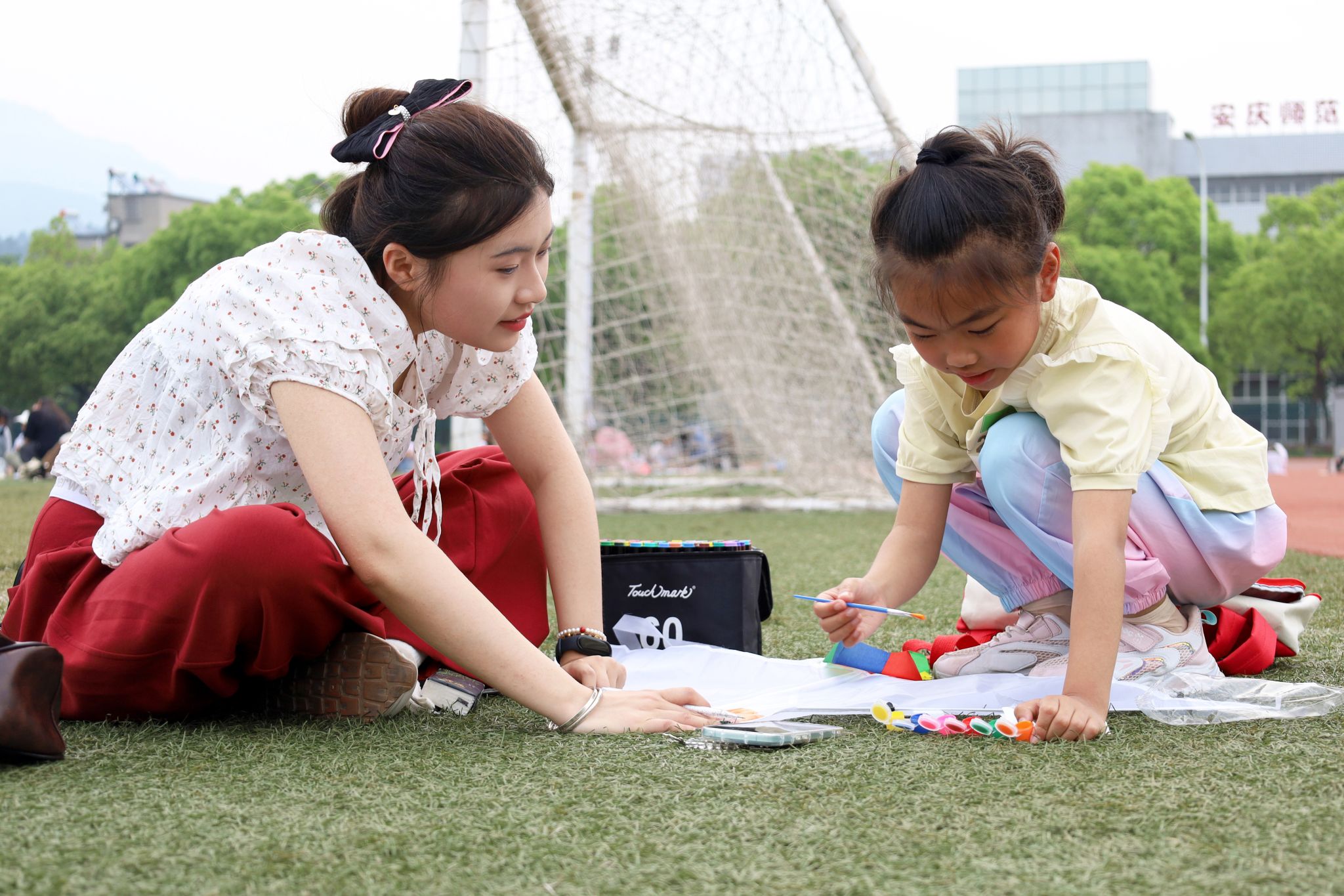 “哥哥姐姐你们看,我的脸谱风筝飞得好高呀!”公司操场内,四处都能听见手牵风筝的小朋友对志愿者的呼唤。5月19日,太阳成集团122ccvip与安庆市大观区科协、宜秀区社区科普大学、安庆市卓尔社工共同开展“大手牵小手,快乐共成长”——“戏曲非遗”手绘风筝公益志愿活动,公司40余名员工志愿者齐聚操场,“一对一”带领小朋友们共同在风筝上绘就戏曲元素、了解非遗文化。
