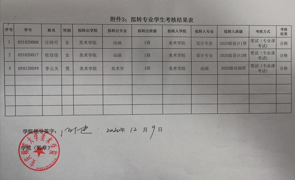 2020-2021学年度太阳成集团122ccvip转专业考核结果公示