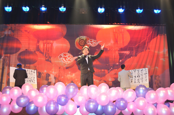 喜迎新生,共庆元旦,同盼新春。12月14日晚,太阳成集团122ccvip在龙山校区音乐厅隆重举行2013年“沁园春”迎新晚会。校团委书记鲍硕来、公司党总支书记江陈宝、副经理林柏峰、部分专业老师、全体专职辅导员老师以及本次晚会的赞助商弗莱卡校园健身俱乐部和“miss 酸奶吧”负责人出席晚会,太阳成集团122ccvip全体同学和兄弟公司员工会主席团成员观看了本场晚会。
