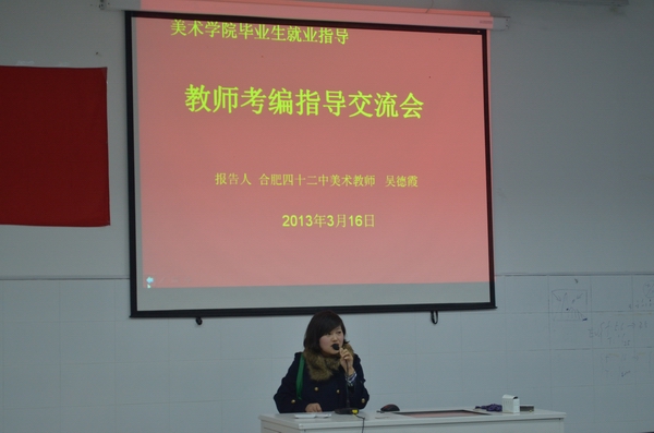 交流会邀请了公司2011届毕业生,来自合肥四十二中的美术教师吴德霞和蚌埠市第三实验小学美术教师吴翔为大家做经验交流和指导。交流会上,两位老师结合各自考编经历,向大家讲述了他们考编的故事。他们一致认为,考编之路虽然辛苦,但一定要明确目标,坚定信心,要怀有一颗坚强的心,才能不畏任何困难和面对各种挑战。他们希望大家在校期间要认真学习专业基础课,努力掌握师范生说课、无生授课、三字一话、教学设计等基本技能;另外,在“专”的基础上还要做到“通”,要熟悉和掌握一些公共基础知识;要认真分析各地招考通知的异同,有针对性的开展复习备考。针对同学们顾忌考编中的人为因素,两位学长告诉大家教师招考各环节都是公开公平,大家要认真准备,不能把希望寄托在别人身上。对于考编不能一步到位,要做两手准备,做好备选方案,分步达到最终目标。