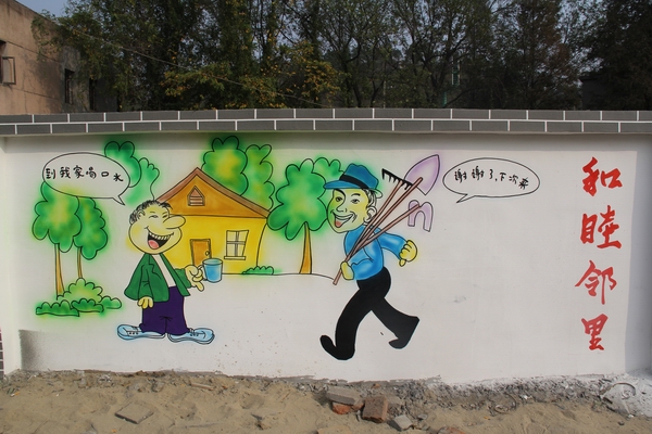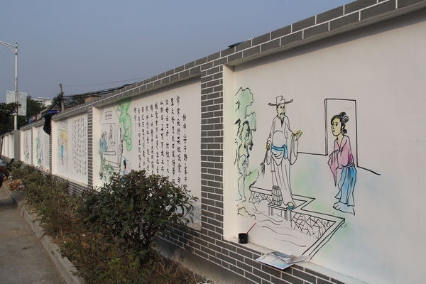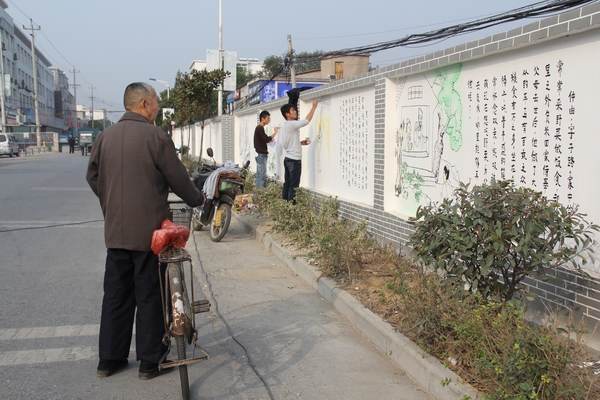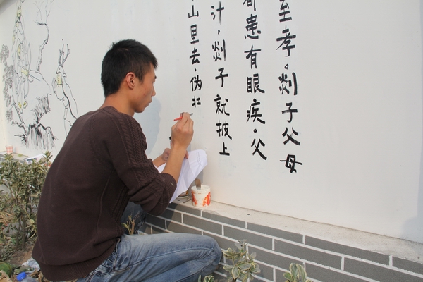 走出公司东门,映入眼帘的是一幅幅绘制在马路两边“二十四孝”墙体彩绘宣传画:《涌泉跃鲤》、《哭竹生笋》、《弃官寻母》……一个个孝道故事在他们的笔下栩栩如生地绘制在墙壁上。来来往往的行人经过这里时都纷纷停下脚步,欣赏墙上的一幅幅精美的画,有的行人拿出手机进行拍摄,有的会与员工进行交流。这些主题鲜明、绘制精美的主题宣传画全部出自于太阳成集团122ccvip墙体彩绘工作室的员工之手。他们利用课余时间,发挥自身专业特长,纯手工绘画,书写文字,他们在绘画的同时,也享受着为社区增添一份美丽的快乐。