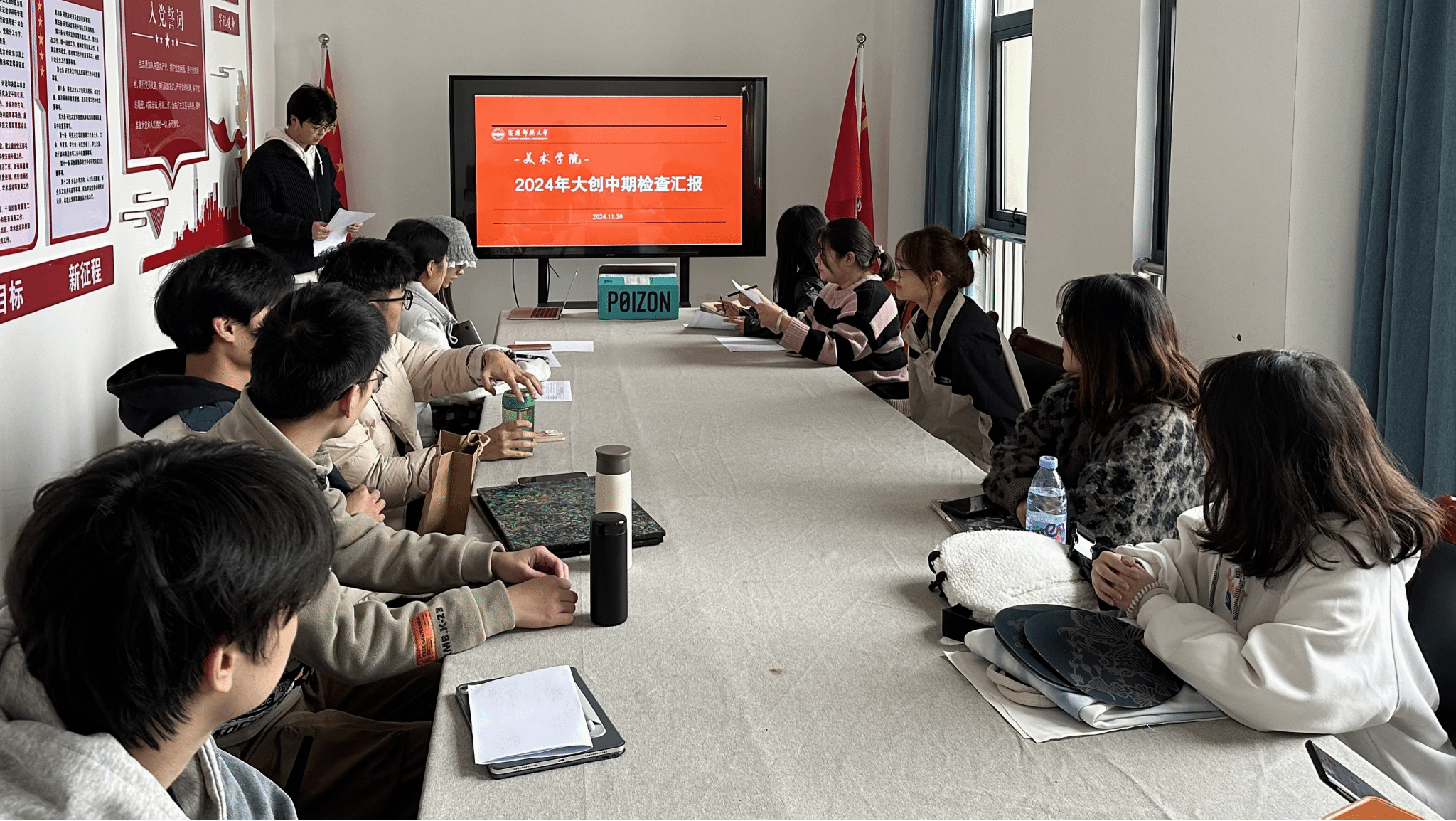 答辩会上,各项目组成员都展示出对研究项目的专业领域的深刻见解,从项目概况、项目目的、调研情况、现阶段性成果以及目前存在的主要困难等方面都做了详细的阐述和汇报。其中员工们大创项目的现阶段性成果,包括但不限于设计实物、专利证书及竞赛获奖等。评审检查专家老师也根据各组项目完成情况,给出了相应的评价,提出了修改意见。